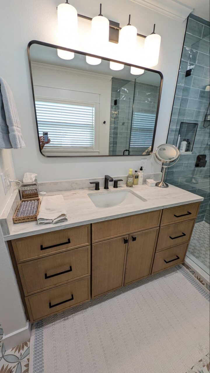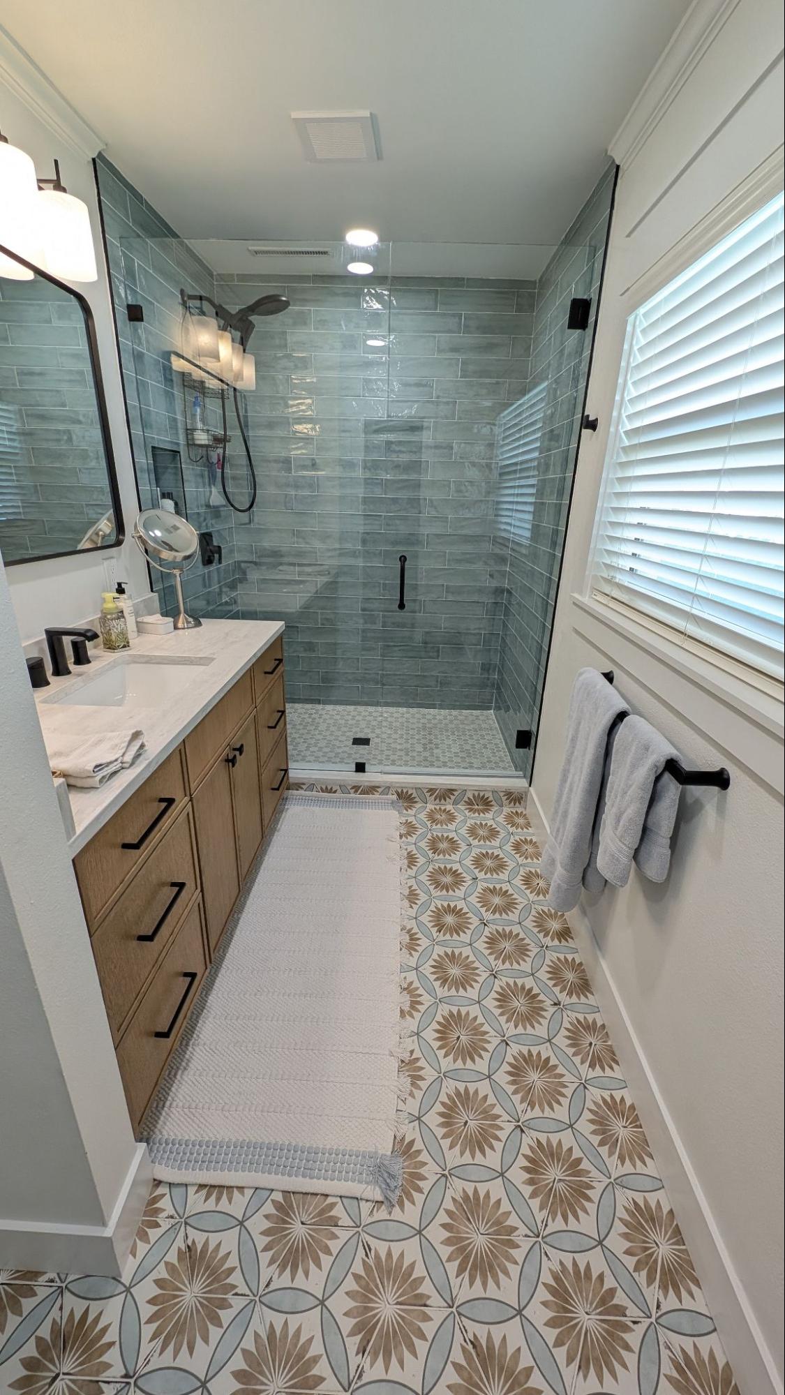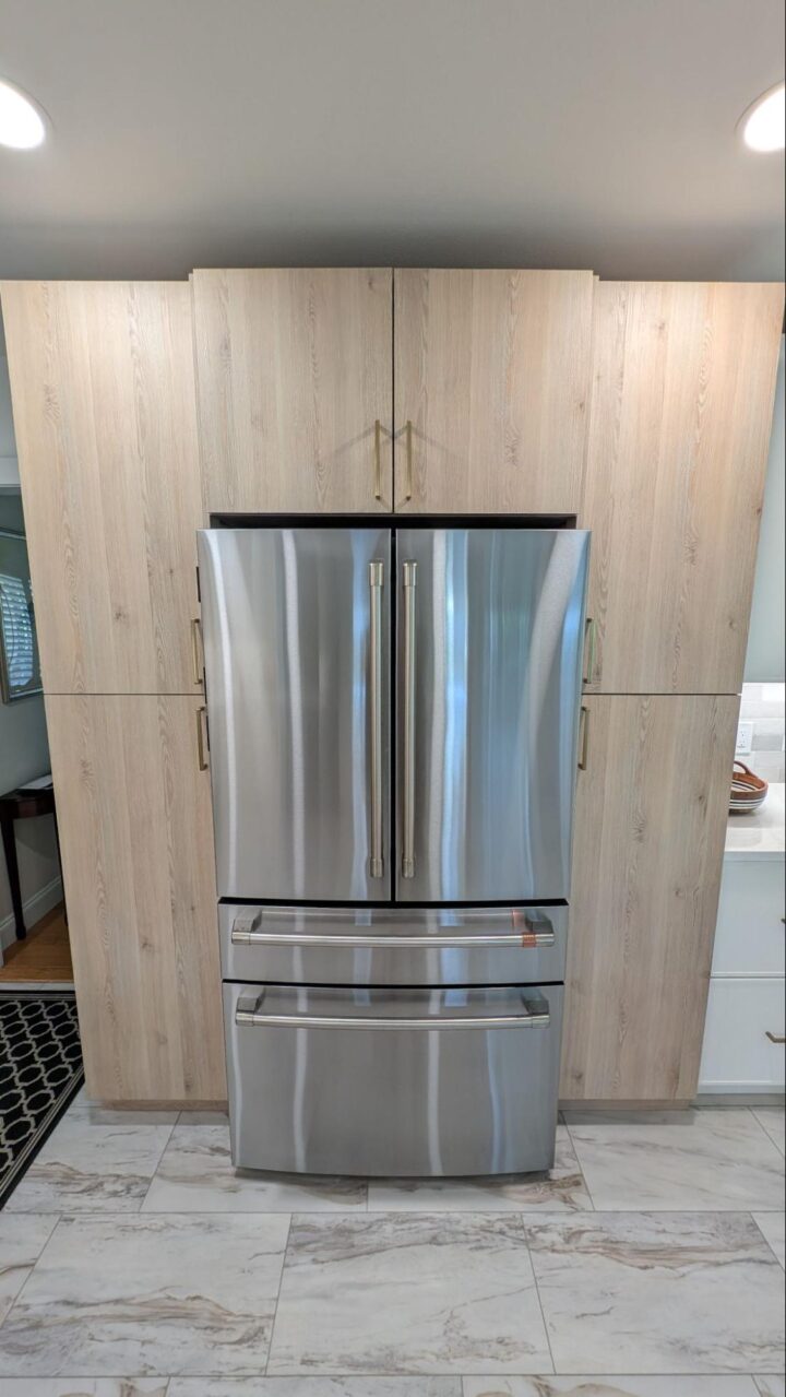 We were originally consulted prior to purchase of this home with the client looking to see if it were possible to open the floor plan at the rear of the home to improve the flow of the small dated kitchen that was cut off from the main living and entertaining space. The client wanted walls removed and needed to confirm it could be done and the approximate cost before committing to the purchase. This is where working with a Florida State Certified Licensed Contractor with over 24 years of expertise in construction and remodeling is critical. The client trusted our rough estimate and confidence we could make her vision a reality and purchased the home. We started our design process which included removing the rear concrete block structural walls at the rear of the home in order to do so. We designed a transitional kitchen using skinny white shaker cabinetry blended with European alternative textured wood grain doors to compliment the art deco period features of the home. Quartz CounterTops with Waterfall Ends