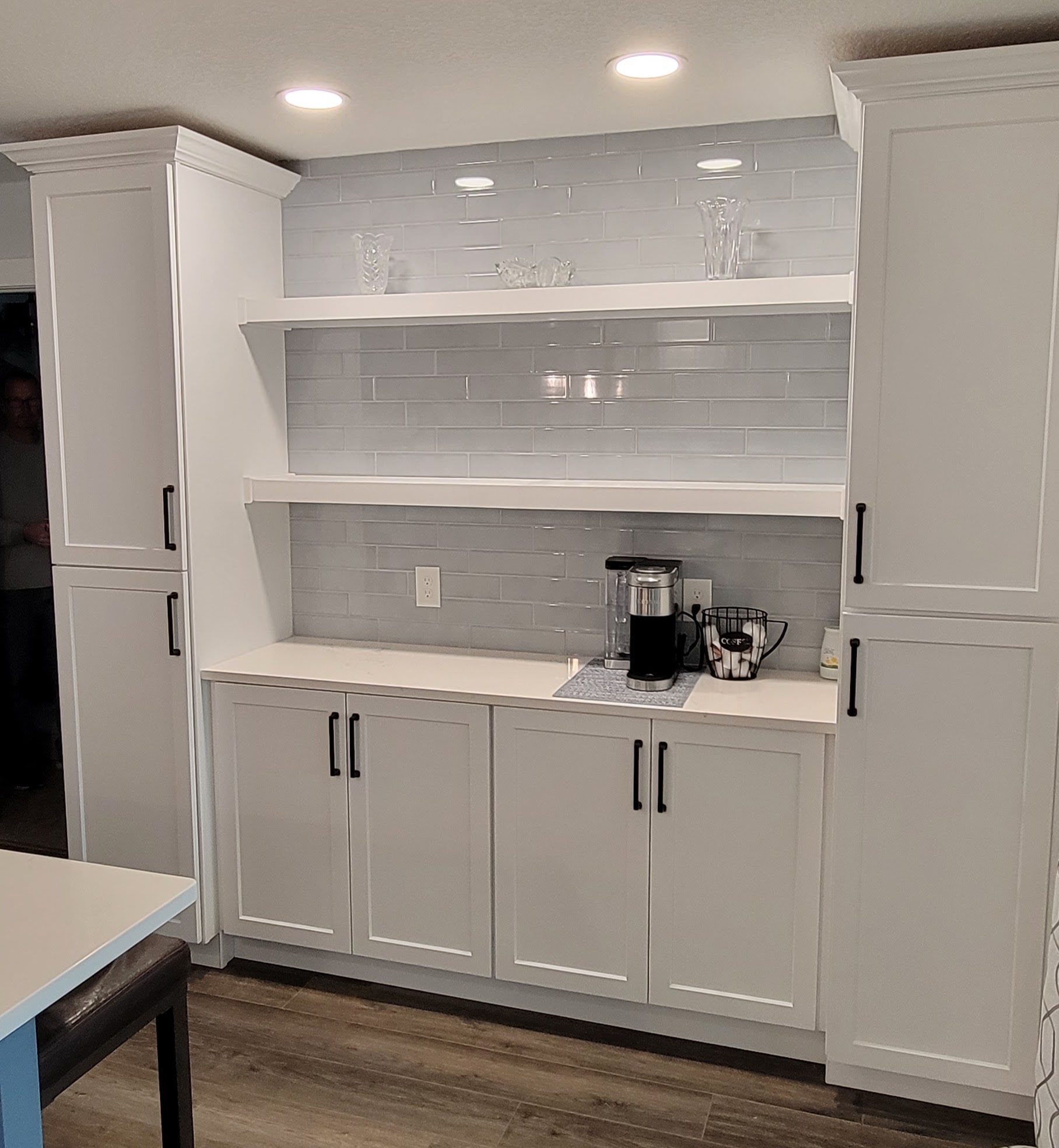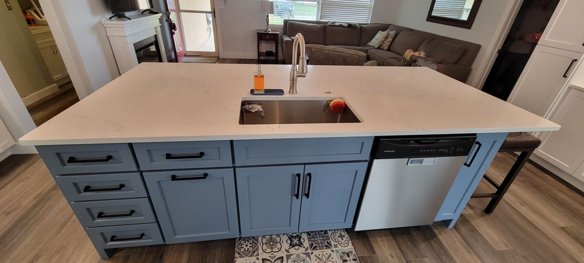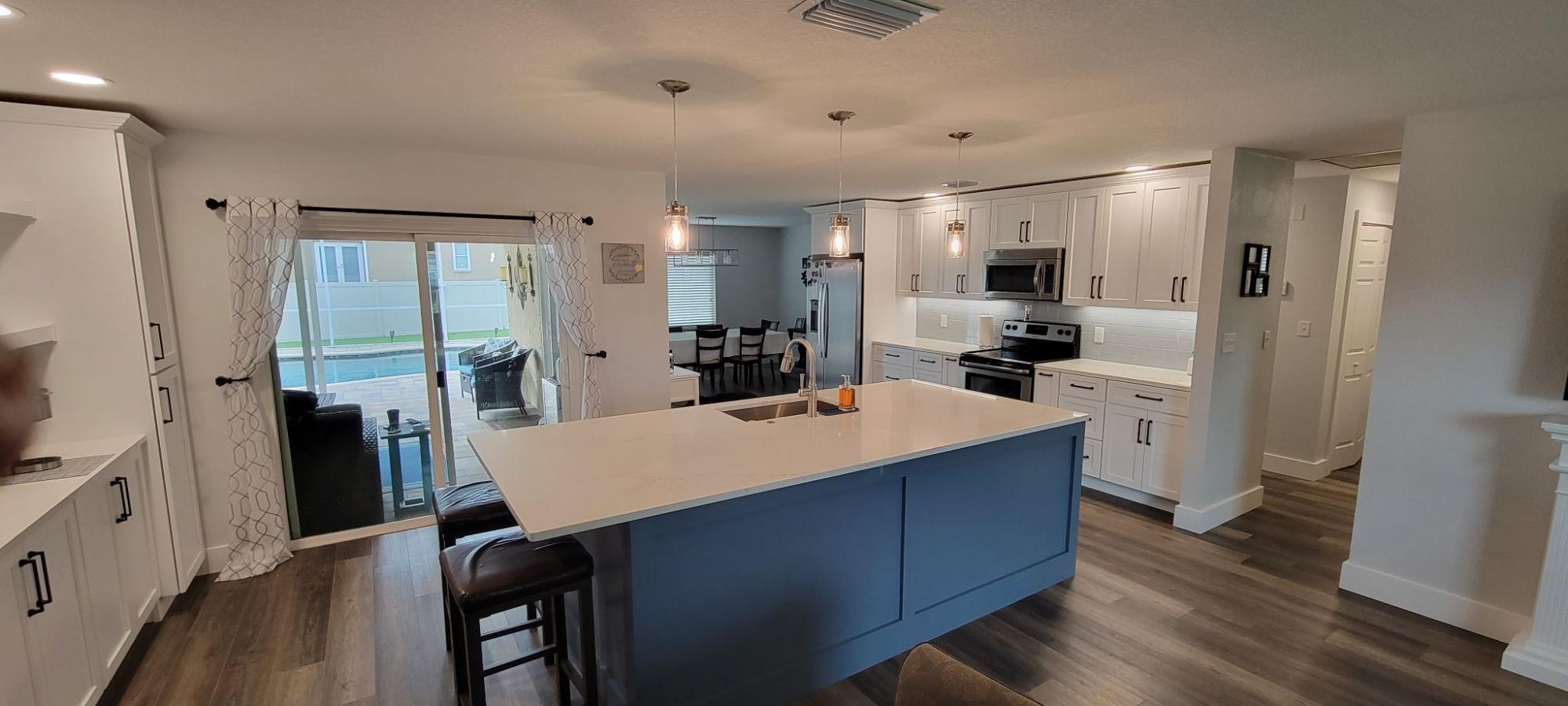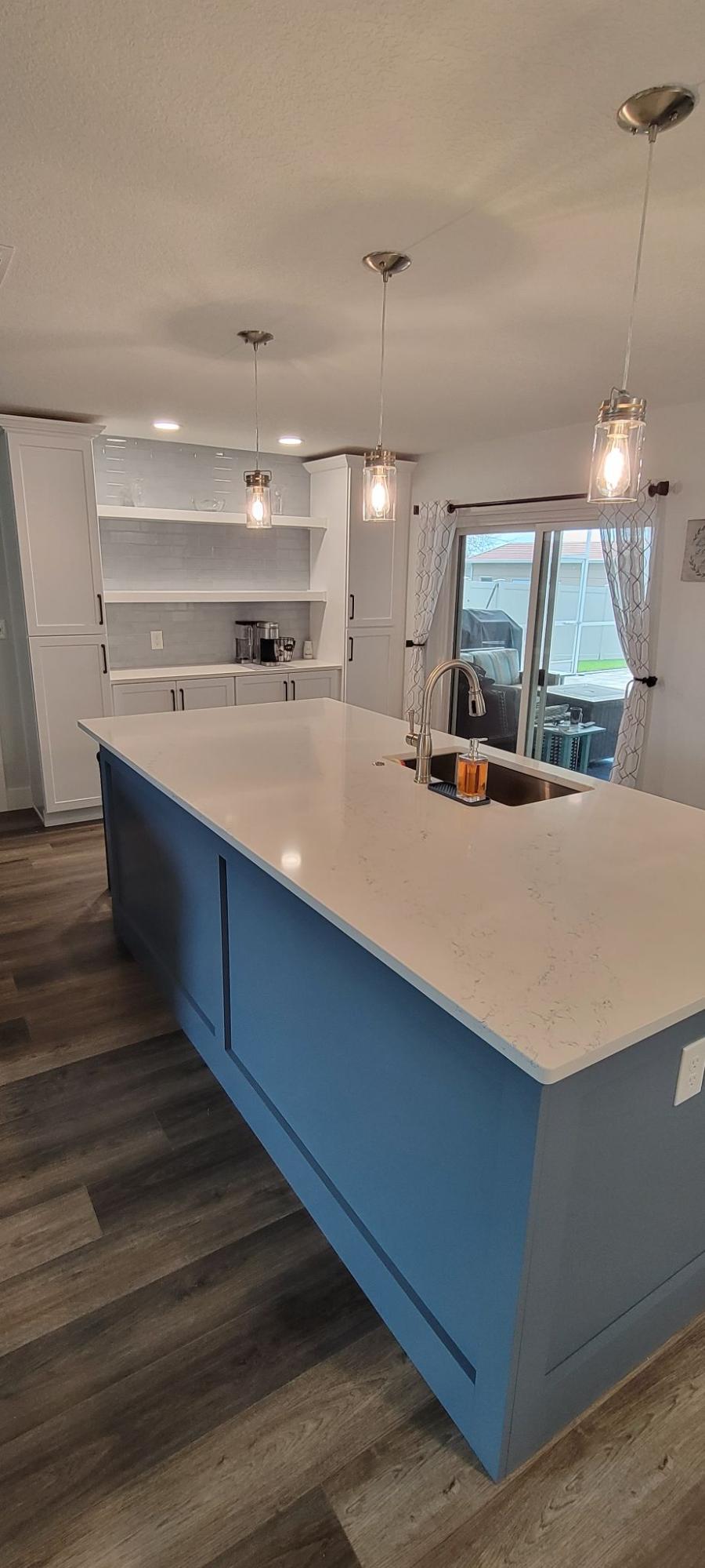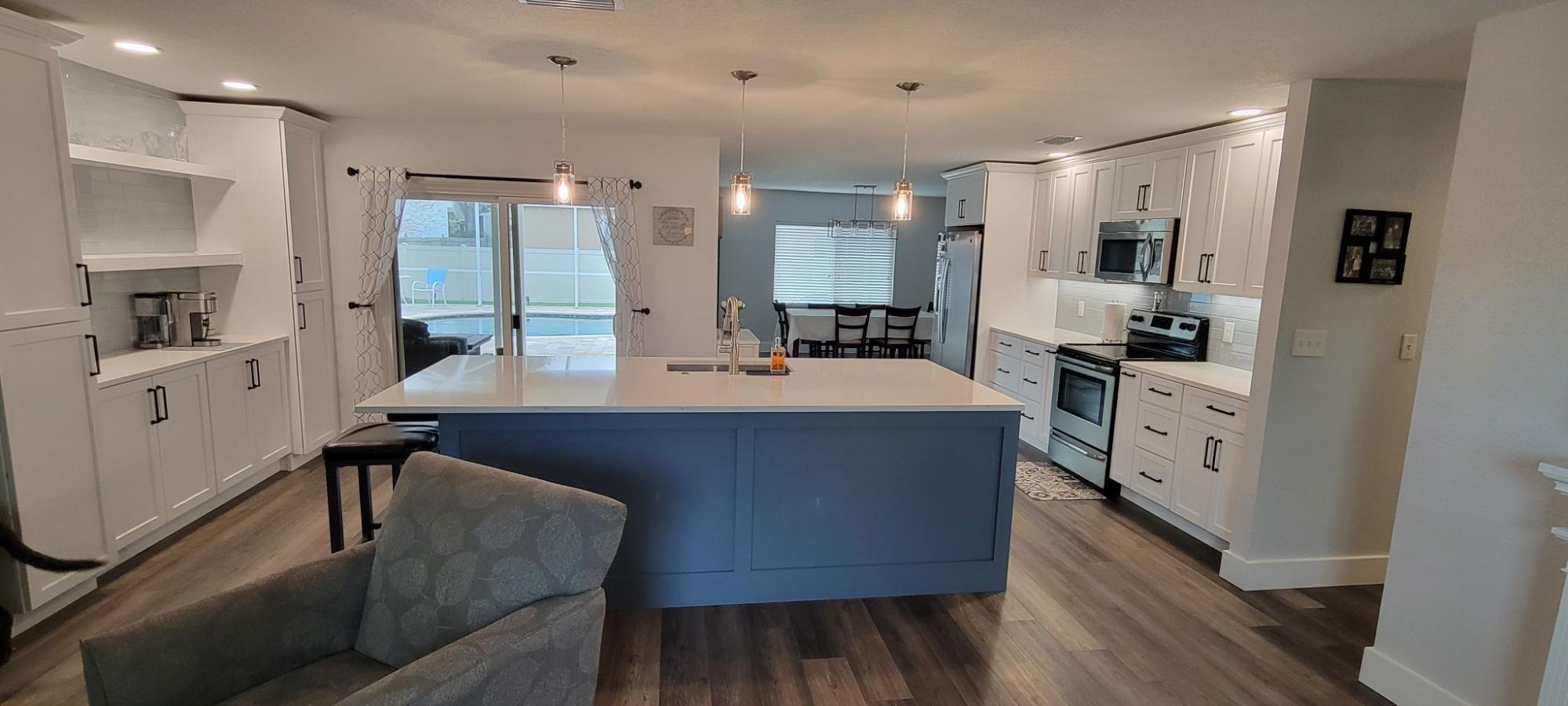 Largo 33773 Scope: Lake Park Area Kitchen Remodel Refresh dated kitchen, relocate island and expand kitchen into dining area to create more storage and coffee/bar with floating shelves.