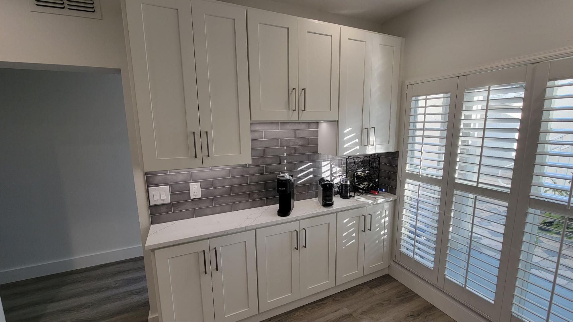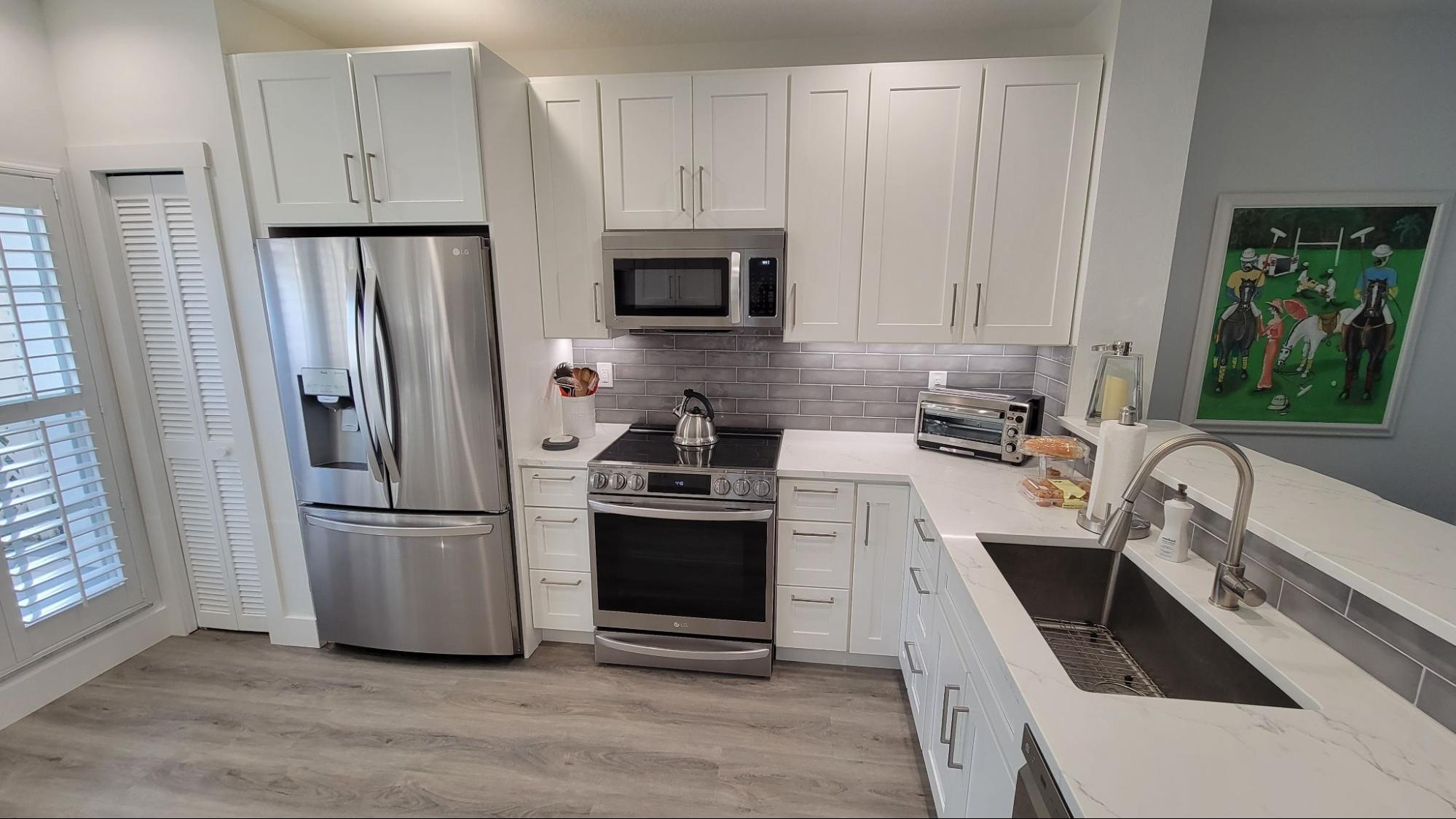 Largo 33774 ShipWatch Condo Scope: Full House Remodel Full Remodel included Kitchen, Master Bedroom-Bath Suite Bath, Guest Bath. All new deck overlooking retention pond, luxury plank vinyl flooring, interior doors and trim. Kitchen with Coffee Bar, Master bath with marble tile shower and curb.